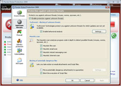 1 месяц ежедневных обновлений со дня регистрации.Для того чтобы продукт начал обновляться ежедневно, его нужно зарегистрировать. Регистратор попросит лишь ввести некоторые анкетные данные, и всё. В ответ на указанный тобой электронный ящик придут логин и пароль. Их нужно ввести во вкладке «Настройка обновлений» и… всё! Полнофункциональная версия периодом на 1 месяц готова. Panda Security выпустила линейку из трех обновленных антивирусных продуктов 2009 года. Каждый из продуктов поддерживает новую версию технологии TruPrevent, представляющей собой движок, анализирующий поведение вредоносного софта. Panda Global Protection 2009 – всесторонняя защита компьютера от любых вирусов и шпионов, пытающихся пробраться в систему из Сети. Включает в себя антивирус, антишпионское программное обеспечение, технологии защиты персональных данных, антиспам, работающий на механизме коллективного разума, инструменты создания резервных копий, брандмауэр, персональный межсетевой экран, антифишинг и анти-руткит, а также утилиты для оптимизации производительности.