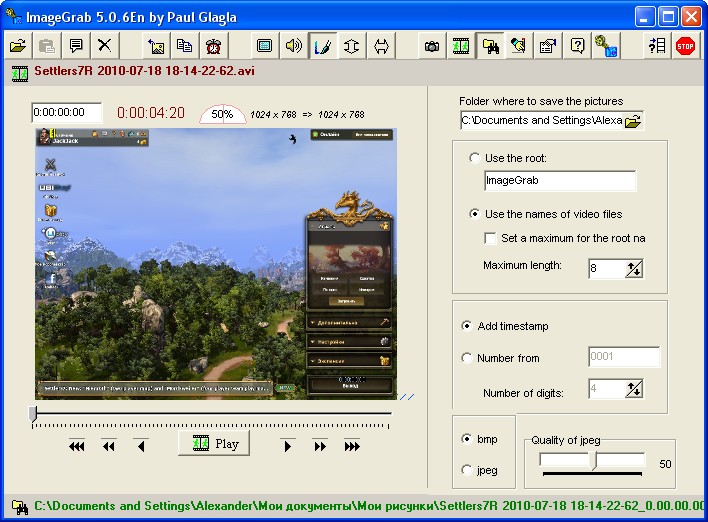 Программа позволяет извлекать из видеозаписи последовательность изображений. Вы можете выбрать частоту извлечения, добавлять на кадры служебную информацию. |