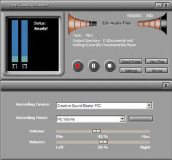 Сохранять звук можно в формате WMA, MP3 и WAV. Есть все необходимые настройки и функция предварительного прослушивания.