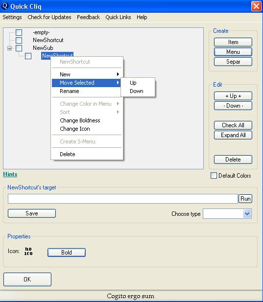 Quick Cliq - небольшое бесплатное приложение, предназначенное для организации мгновенного доступа к необходимым объектам. Теперь все востребованные программы, файлы, папки и адреса URL будут находиться на расстоянии «одного щелчка» кнопкой мыши.Приложение, с помощью которого можно организовать доступ к необходимым объектам (программам, папкам, заметкам и т.д.) благодаря интеграции специальных опций в контекстное меню Windows. |