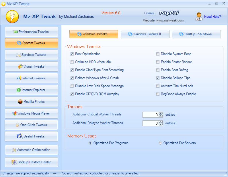 Инструменты Mz XP Tweak позволят сделать пользование ПК более безопасным и стабильным. |