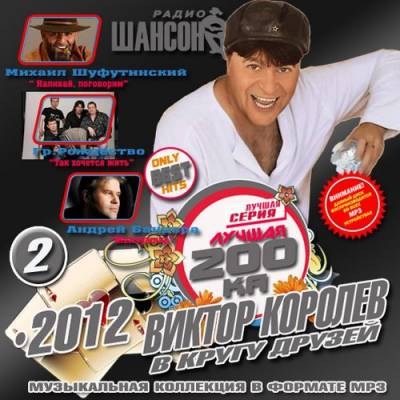 | Категория: Сборник Вокалист: VA Название диска: Лучшая 200ка: Виктор Королев в кругу друзей 2 Стиль: Шансон Год выпуска: 2012 Кол-во трэков: 200 Битрейт аудио: mp3 | 128 kbps Время : 12:07:56 Размер файла: 713 MB Треклист: 001 Виктор Королев - За Глаза Миндальные 002 Ирина Круг И Виктор Королев - В.Королев - Слова 003 Жека - Когда Не Нужно Лишних Слов 004 Виктор Королев - Самая-Самая! 005 Гр.Рождество - Так Хочется Жить 006 Виктор Королёв - Ля-Ля-Тополя 007 Елена Ваенга - Курю 008 Виктор Королёв - Базар-Вокзал 009 Артур - Ещё Вчера 010 Виктор Королев - Околдуй Меня 011 Михаил Шуфутинский - Наливай, Поговорим 012 Александр Boss - Водочка 013 Виктор Королёв - Девчонка Рыжая 014 Ирина Круг - Любить Не Страшно 015 Афина - Душа Кричит 016 Джемма Халид - Девушка Из Нагасаки 017 Виктор Королев И Ирина Круг - Букет Из Белых Роз 018 Артур - Забыть Нельзя 019 Елена Ваенга - Гуцулочка 020 Эльдар Далгатов - Ты Моя Душа 021 Виктор Королев - Горячий Поцелуй 022 Стас Михайлов - Непрощенный 023 Виктор Королев - Лимончики 024 Андрей Бандера И Ринат Сафин - Ручеек 025 Виктор Королев - Шумел Камыш 026 Гр.Рождество - Карандаши 027 Виктор Королёв - Гуд! Гуд! 028 Елена Ваенга - Говори,Говори 029 Виктор Королев - Мама, Не Ругай 030 Кабриолет - Любовь-Березка 031 Виктор Королёв - Белый Пух 032 Штар - Свадьба 033 Виктор Королев - Обручальное Колечко (Дуэт С О.Стельмах) 034 Бутырка - Не Мучь Меня 035 Ирина Круг И Виктор Королев - Ирина Круг - Роман 036 Григорий Лепс - Настоящая Женщина 037 Виктор Королёв - Расцвела Черёмуха 038 Ирина Круг - Остров Любви 039 Виктор Королев - Кепочка 040 Денис Майданов - Осторожно... Любовь 041 Виктор Королёв - Хрустальный Замок 042 Афина - Сердце Напополам 043 Виктор Королев - За Твою Красивую Улыбку 044 Любовь Успенская - Давай Начнем Сначала 045 Виктор Королев И Ирина Круг - Качает Небо Золотые Купола 046 Валерий Палаускас & Аэроплан - Не Скучай Калина 047 Виктор Королев - Парамелла 048 Григорий Лепс - Самый Лучший День 049 Виктор Королев - Душа 050 Анатолий Полотно И Федя Карманов - Поцелуй Меня, Удача! 051 Виктор Королёв - Моя Любимая 052 Рада Рай - Радуюсь 053 Виктор Королёв - Васильковое Платье 054 Любовь Успенская - Лети, Моя Девочка, Лети! 055 Виктор Королёв - Снегири 056 Ирина Круг & Алексей Брянцев - В Сердце Твоём 057 Виктор Королев - Поцелуи! 058 Воровайки - Я Буду Ждать Весну (Новая Версия) 059 Виктор Королев - Драгоценная 060 Стас Михайлов - Я Ждал 061 Виктор Королев - Гуляка 062 Андрей Бандера И Рада Рай - Душа 063 Эльдар Далгатов - Слезы 064 Денис Майданов - Ничего Не Жаль 065 Виктор Королёв - Малышка 066 Александр Розенбаум И Зара - Любовь На Бис 067 Виктор Королёв - Чемоданчик 068 Анатолий Полотно И Федя Карманов - Денежки 069 Виктор Королев - Жахнем 070 Ирина Круг - Перелетная Птица 071 Виктор Королёв - Бокал Любви 072 Жека - Уйду К Цыганам 073 Виктор Королев - А На Ветках Снегири 074 Ринат Сафин - Татарин 075 Виктор Королев - Непутевая 076 Эльдар Долгатов - Полюбил На Свою Беду 077 Виктор Королёв - Губит Людей Не Пиво 078 Сергей Чернышев - Рюмочки-Стаканчики 079 Виктор Королёв - Сердце Твоё Такое 080 Евгений Росс - Прости Мою Любовь 081 Виктор Королёв - Было Или Нет 082 Афина - Ну Где Ты Был 083 Виктор Королев - Замуж Выходи 084 Федя Карманов - Баста 085 Сергей Любавин - Эта Женщина 086 Кабриолет - Калина 087 Виктор Королев - Лилия 088 Стас Михайлов - Живи И Знай 089 Виктор Королев - Рябина 090 Таис - Я Такая Пьяная 091 Виктор Королев - Как Жаль 092 Воровайки - Северная Звезда (Дуэт С М. Шуфутинским) 093 Виктор Королев - Белая-Слепая 094 Григорий Лепс, Але